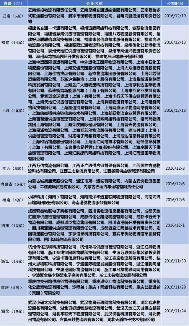 各省市无车承运人试点工作不断加快,最近,内蒙古和云南试点企业名单也出来了。